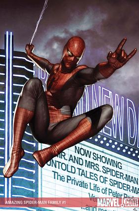 AMAZING SPIDER-MAN FAMILY #1 Written by Marc DeMatteis & TOM DEFALCO Heads’ up, Web-Slingers! Not getting nearly enough bang for your Brand New Buck with Thrice Monthly Spider-Man? Well, get ready to have your Spider-Senses overloaded with the Brand New Amazing Spider-Man Family! Check in here for slices of life from Spidey and the rest of the Brand New Day Cast. We all know Spider-Man’s origin – but what happened the day after Uncle Ben died? Find out as J.M. De Matteis and Spanish Sensation Alex Cal bring you Spider-Man: 48 Hours! Also, the Amazing Spider-Girl team of Tom DeFalco, Ron Frenz and Sal Buscema show us life before MayDay became Spider-Girl with Mr. and Mrs. Spider-Man! Also, check out Aunt May, Agent of F.E.A.S.T. and a flashback to the birth of Spidey’s New Ways To Die nemesis, VENOM! |