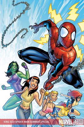 SPIDER-MAN SUMMER SPECIAL Written by KEITH GIFFEN & PAUL TOBIN August is still summer, right? Yeah? COOL! Then we’re hittin’ ya up with two ALL-NEW Spidey stories from times when he wasn’t Secretly Invading or Branding New Days. First, Spidey teams up with Falcon to handle an outbreak of futuristic weaponry showing up in Harlem, and then MARY JANE takes center stage as she teams up with She-Hulk, Hellcat, Marvel Girl and some other lovely ladies to take on The Enchantress, in this one-shot! 48 PGS./Rated A …$3.99 |