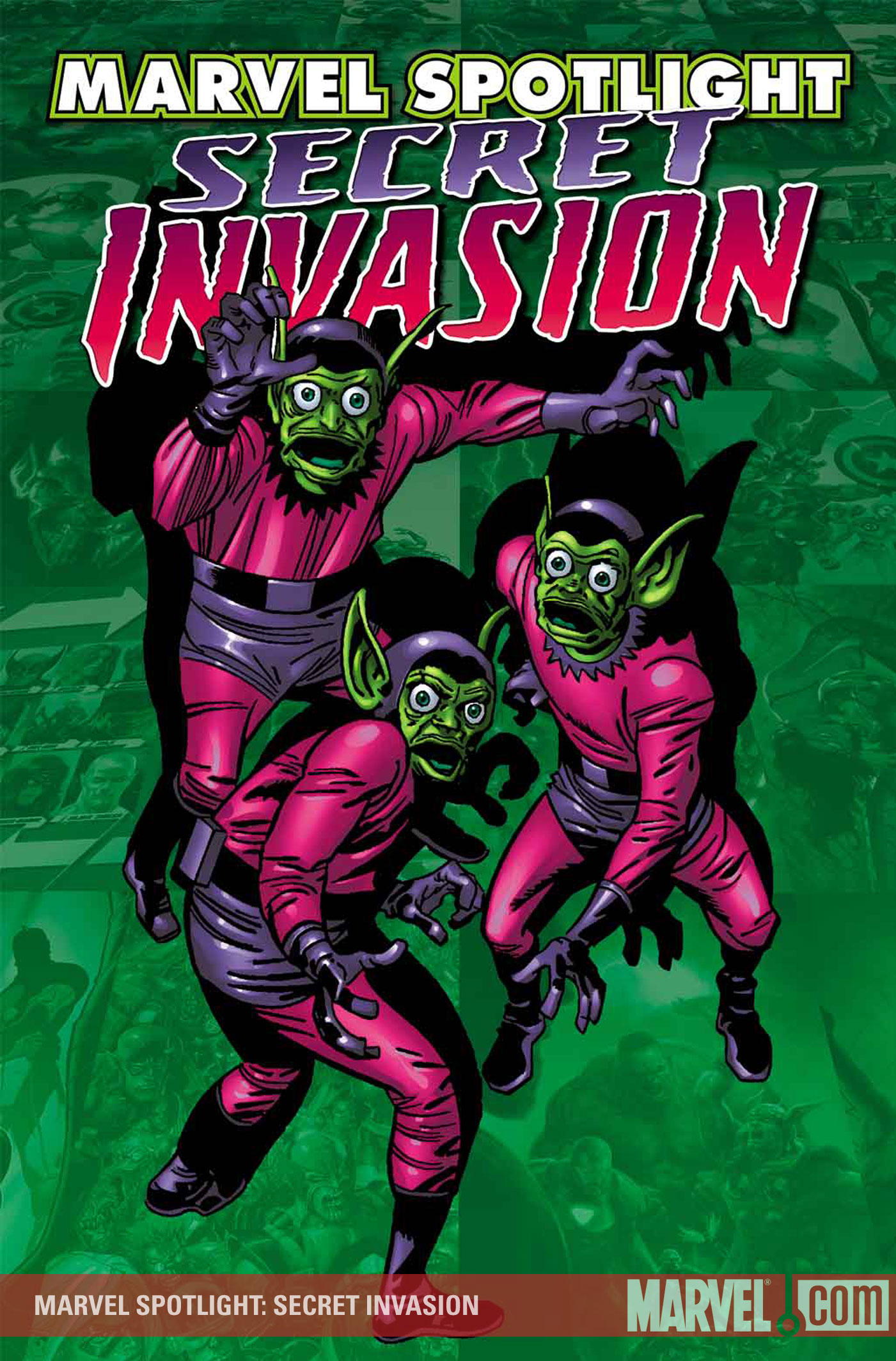 MARVEL SPOTLIGHT: SECRET INVASION Written by JOHN RHETT THOMAS The infiltration is complete. The SECRET INVASION has begun. Who do you trust? Among the oldest baddies in the Marvel Universe, the Skrulls have decided that now is the time to strike. As the true extent of this infiltration is revealed, and the identities of the heroes the intergalactic shape-shifters have taken over are brought to light, the suspense will be palpable. MARVEL SPOTLIGHT celebrates this eight-part event by Brian Michael Bendis and Leinil Yu with an in-depth account of all things Skrull, featuring insider interviews with the creators involved in SECRET INVASION and its various crossover titles. We'll be criss-crossing Marvel history to tie together all the intrigue and plot twists that will make SECRET INVASION the comics event of the summer! You can trust us on that. You do trust us, don't you? |