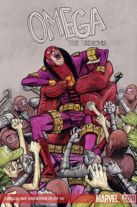 OMEGA: THE UNKNOWN #9 (of 10) Written by JONATHAN LETHEM & KARL RUSNAK In the astounding climax of the saga of Omega versus the robot horde, a battle extraordinaire which will leave all our heroes changed, and one of them really and truly dead. The greatest rooftop performance since the Beatles' "Let It Be". |