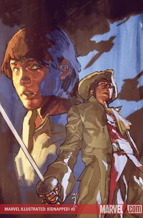 KIDNAPPED! #2 (of 5) Written by ROY THOMAS At the order of his fiendish uncle, David Balfour has been kidnapped aboard The Covenant. Having no other options, David accepts the meager life of a cabin boy. When a stranger, Alan Stewart, is taken aboard, David overhears a plot to kill Stewart and take his money. Casting his lot with the stranger, David and Stewart must now face off against the dangerous and deadly crew! 32 PGS./Rated T+ …$3.99 |