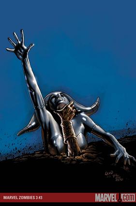 MARVEL ZOMBIES 3 #3 (of 4) Written by FRED VAN LENTE The epic battle of Zombie vs. Robot shambles on! All that stands between the flesh-crazed armies of the Marvel Zombies and the entirety of the Marvel Universe is…Aaron "Machine Man" Stack? And if he has to shoot, slice, explode, melt, dissolve, chop, crush, dismember, fry, electrocute, bludgeon, blast, harpoon, and, of course, insult every super-powered cannibal in the Zombieverse, well, that's just what he's gonna do. But unbeknownst to him, the Zombie Kingpin has already hatched a fiendish plot to ensure that all of the M.U. will be consumed by an undead apocalypse! 32 PGS./Parental Advisory …$3.99 |
