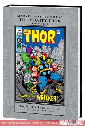 MARVEL MASTERWORKS: THE MIGHTY THOR VOL. 8 HC Written by STAN LEE It’s time to take another trip up the Rainbow Bridge to fair Asgard with the greatest team comics has ever known, Stan “The Man” and Jack “King” Kirby! Their Thor epics are the peak of cosmic action and mythic adventure, and these ten adventures will show you yet again just why. It all begins as the Mighty Thor takes a journey across time into an apocalyptic atomic future where man is now mutate, but there’s no rest upon his return because then it’s the god vs. god when Thor does battles with Pluto, Lord of the Underworld! And battles aren’t the only thing you can bet on. Queen Karnilla pines for the noble Balder the Brave, while the amazing being known as “Him” (and known to Marvelites as Adam Warlock) takes the Lady Sif to be his perfect mate! Methinks that date may end in fisticuffs. Then it’s a battle through Loki to find, and learn the amazing origin of, the one-and-only Galactus! It’s a cosmic revelation as can only be brought to you by the King of Comics! But that ain’t all! There’s a knuckle-smashing showdown with the Thermal Man, the return of the Wrecker and a heart-wrenching astral adventure featuring Thor’s former ladylove, Jane Foster. Collecting THOR #163-172. 224 PGS./All Ages …$54.99 |