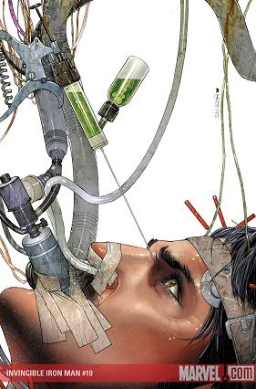 INVINCIBLE IRON MAN #10 Written by MATT FRACTION In the world-shaking wake of SECRET INVASION, everything has changed. Now a fugitive, Tony Stark initiates the deletion sequence that could save the world, but end his life…while Norman Osborn assumes the reins of power and brings the H.A.M.M.E.R. down. How much trouble are Tony, Pepper, and Maria in? Things go from bad to worse as WORLD'S MOST WANTED continues here! By Matt Fraction and Salvador Larroca! 32 PGS./Rated A …$2.99 |