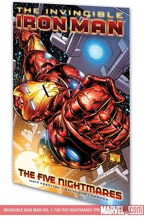 INVINCIBLE IRON MAN VOL. 1: THE FIVE NIGHTMARES TPB Written by MATT FRACTION Tony Stark — Iron Man, billionaire industrialist and director of S.H.I.E.L.D. — faces the most overwhelming challenge of his life. Ezekiel Stane, the son of Tony’s late business rival and archenemy Obadiah, has set his sights, his genius and his considerable fortune on the task of destroying Tony Stark and Iron Man. What’s worse, he’s got Iron Man tech, and he’s every bit Iron Man’s equal and opposite…except younger, faster, smarter…and immeasurably evil. Rising-star writer Matt Fraction (IMMORTAL IRON FIST) and superstar artist Salvador Larroca (UNCANNY X-MEN) join forces to repulsor-ray your comic books to a cinder! Collecting INVINCIBLE IRON MAN #1-6. 184 PGS./Rated …$19.99 |