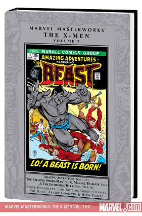 MARVEL MASTERWORKS: THE X-MEN VOL. 7 HC Written by STEVE ENGLEHART, GERRY CONWAY,STAN LEE & ARCHIE GOODWINPenciled by TOM SUTTON, GIL KANE, HERB TRIMPE,BOB BROWN, MARIE SEVERIN & JIM STARLIN Continuing the story of Marvel’s original mutant adventurers, the MARVEL MASTERWORKS brings you the rarest X-Men appearances collected together for the first time ever! When the merry mutants hit the skids, they don’t buckle under — they hit the road, and you’re riding shotgun. So sit back and get ready for a set of stories that rock the X-Men world to this day! Pushed undercover by mutant paranoia run amok, the Beast sets off on his own, taking a genetic research job with the Brand Corporation. But Hank McCoy’s scientific curiosity will come to curse him forever as an experiment gone horribly wrong turns him truly into a beast. Fanged, covered in head-to-toe fur, hunched over and driven to bouts of furious bloodlust, McCoy must struggle to retain his humanity as he struggles against the Brotherhood of Evil Mutants, Quasimodo the Living Computer, Juggernaut, the mutant Mimic and the emerging menace of the Secret Empire that seeks to rend the X-Men asunder. Meanwhile, you’ll see Havok and Polaris head to the desert Southwest — but somehow excitement doesn’t stray far when the green-haired magnetic mutant encounters the green goliath himself, the Incredible Hulk! Iceman engages in aerial battle with someone who might not call him “friend,” the Amazing Spider-Man — but all is forgiven when the combined X-Men team-up to aid the wall-crawler against the living vampire, Morbius! Collecting AMAZING ADVENTURES #11-17, INCREDIBLE HULK #150 and 161, AMAZING SPIDER-MAN #92, MARVEL TEAM-UP #4, and the rare X-MEN #67-80 and ANNUAL covers, this volume is a must-have for every mutant madman. 240 PGS./All Ages …$54.99 |
